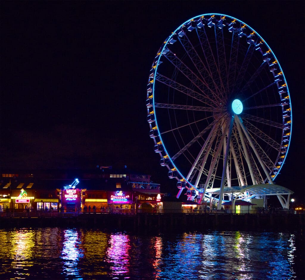 Built in 2012, The Seattle Great Wheel, is the largest ferris wheel on the west coast at 174' tall. While we do not offer full buyouts at this time, we're happy to incorporate tickets at bulk purchase rates into your next event. Custom wheel lightings are also available.
