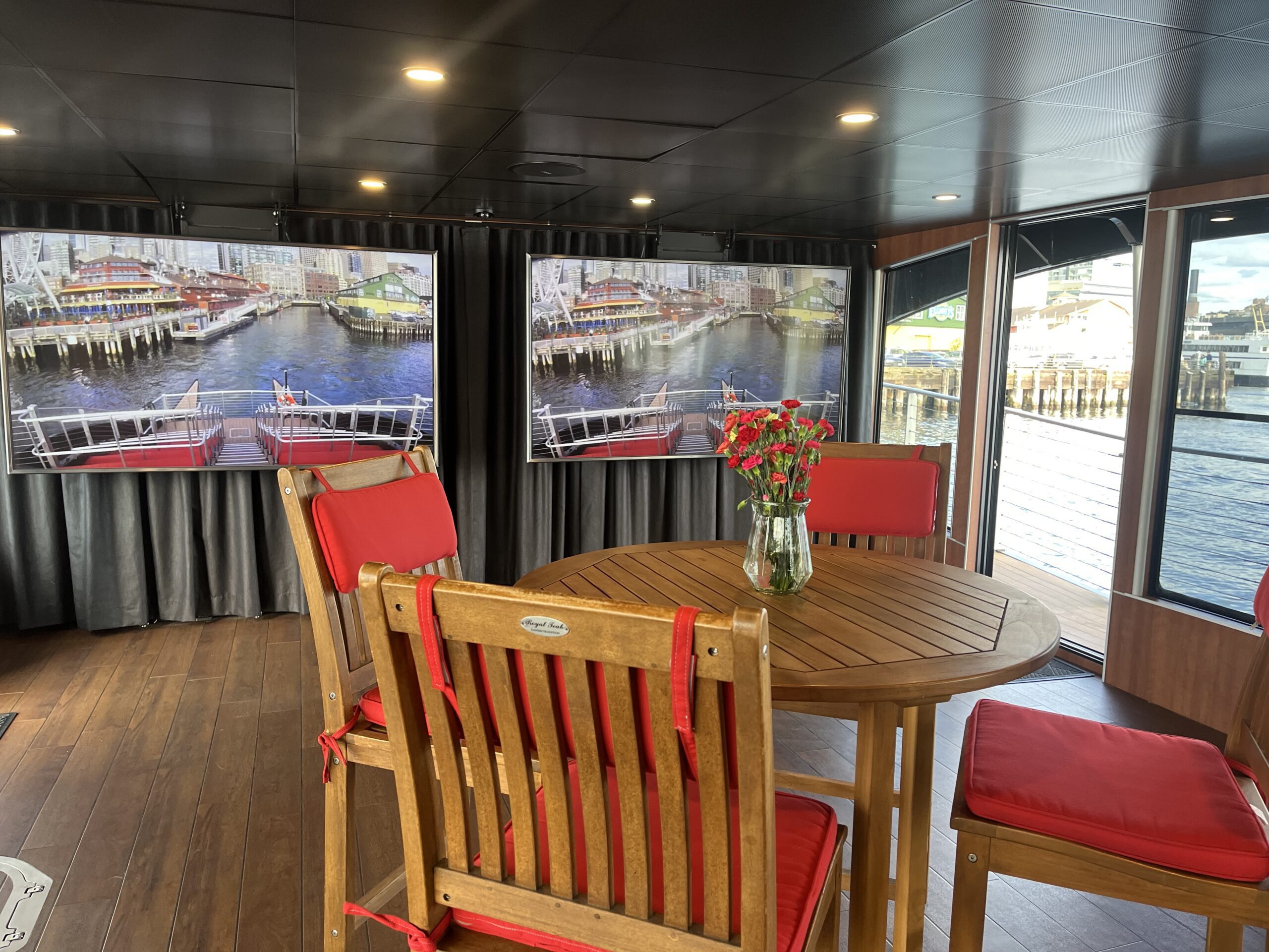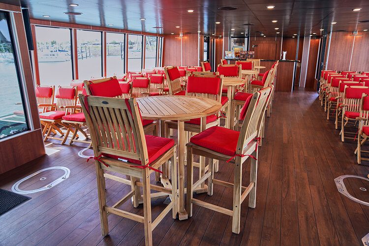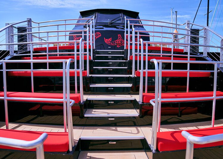 Our stylish black and red catamarans can be rented out as private charters for one of the best ways to experience the Seattle waterfront. Booking as a charter provides access to our on-site catering menu which you can view here. We do not allow guests to bring in their own catering or alcohol.